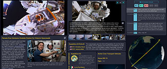 : From the makers of the Apollo in Real Time websites comes a new experience with 500 times more data. ISS in Real Time, by NASA contractors Ben Feist and David Charney, was created with only publicly-sourced files compiled solely during their free time. The site offers the chance to explore more than 9,000 days of photos, video and audio transmitted during the 25 years of continuous human residency on the space station.