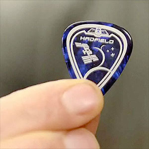 A close-up of the custom guitar pick that astronaut Chris Hadfield is flying to the International Space Station. (Larrivée Guitars)