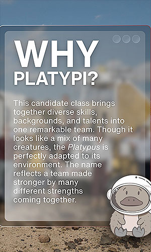 Why Platypi? "The name reflects a team made stronger by many different strengths coming together." (NASA) |
