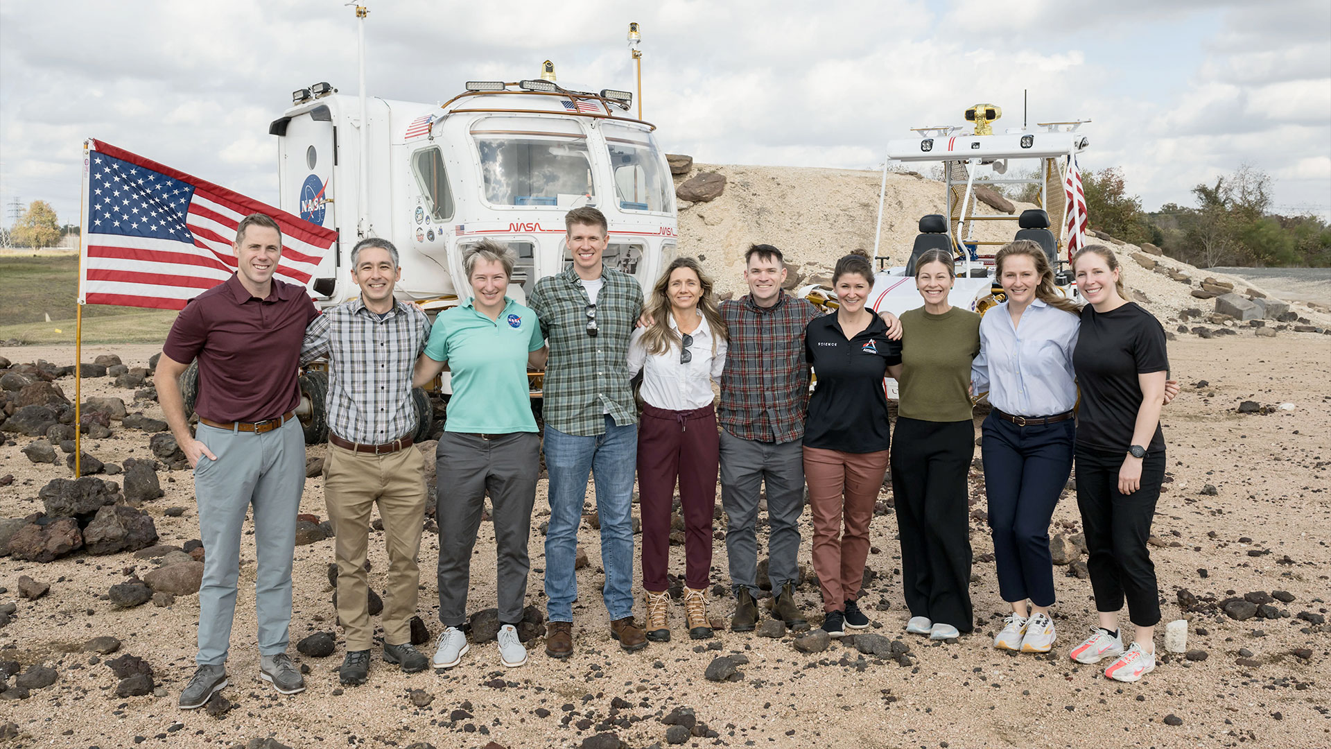 The 2025 astronaut candidate class, nicknamed the Platypi, in front of NASA's Space Exploration Vehicle and Ground Test Unit rover at the Johnson Space Center Rock Yard in Houston, Texas. From left to right: Cameron Jones, Yuri Kubo, Erin Overcash, Adam Fuhrmann, Anna Menon, Ben Bailey, Lauren Edgar, Katherine Spies, Becky Lawler and Imelda Muller. (NASA/James Blair) |