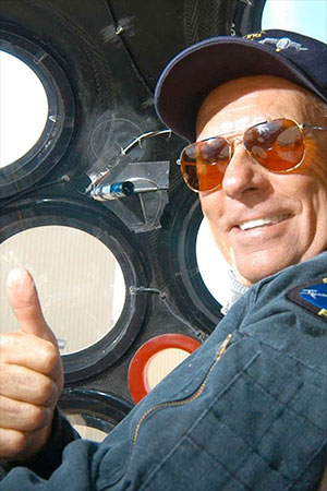 Mike Melvill gives a thumbs up from the cockpit of SpaceShipOne, the rocket-powered spaceplane that earned him the first pair of U.S. commercial astronaut wings in 2004. (Scaled Composites)