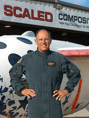Mike Melvill poses in front of SpaceShipOne. (Scaled Composites)