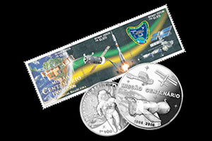 March 31, 2006 — The Brazilian Space Agency (Agência Espacial Brasileira, or AEB) will honor the currently on- going spaceflight of their nation's first astronaut, Marcos Pontes, with the introduction of commemorative stamps and coins during a ceremony to be held Monday, April 5.