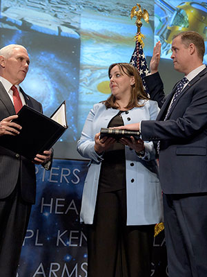 "Today marks the beginning of a new and exciting chapter for this storied agency because the President has chosen a distinguished leader to serve as administrator," remarked Pence. "Above all, Bridenstine brings an unrivaled passion for America's space program, and an unwavering respect for the more than 18,000 scientists, engineers, astronauts, lawyers, contractors, officers, analysts and other personnel of this great organization."