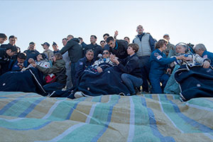 The spacecraft was met on the ground by a recovery team led by Russian forces and joined by NASA and Japanese medical personnel to assist Shkaplerov, Kanai and Tingle as they began their readjustment to gravity.
