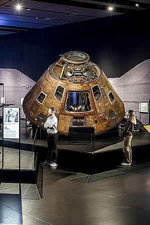 The Space gallery replaces "Exploring Space," which was open for nearly 40 years. In addition to the command module, Space brings together historic items that highlight the Space Age and the future of space exploration. The hall is the first and only place in the world where the public can view an Apollo spacecraft — which splashed down from the moon — side by side with a Soyuz descent module, one of the modern means of returning astronauts from low Earth orbit.