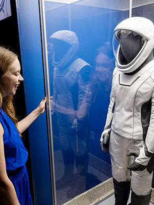 Hayley Arceneaux's Inspiration4 crewmates' suits are also on display: Sian Proctor at the Smithsonian; Jared Isaacman at Kennedy Space Center Visitor Complex; and Chris Sembroski at the U.S. Space & Rocket Center. (Proctor/KSCVC/Sembroski) |