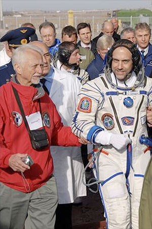 | October 14, 2008 — Richard Garriott's approach to the International Space Station (ISS) this morning may have seemed familiar to him, even though this was his first flight in space. That feeling could be attributed in part to the six months of training he underwent for the mission, but it might also have been what happened when he was twelve, or more appropriately, what his father did then.