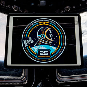 NASA's logo for 25 Years of Human Presence on the International Space Station, as displayed on board the orbiting outpost. (NASA)