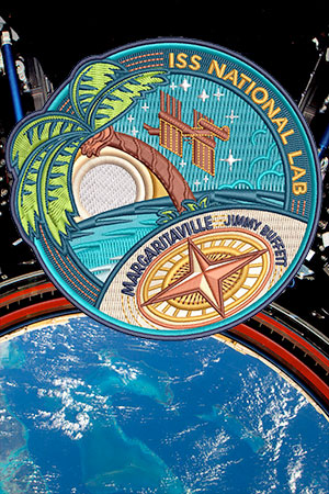 Based on the singer's original ideas, the collectible patch features the ISS as its orbit brings it over a tropical paradise. Buffett included both daytime and nighttime elements as a nod to the ISS encountering 16 sunrises and sunsets every day.
