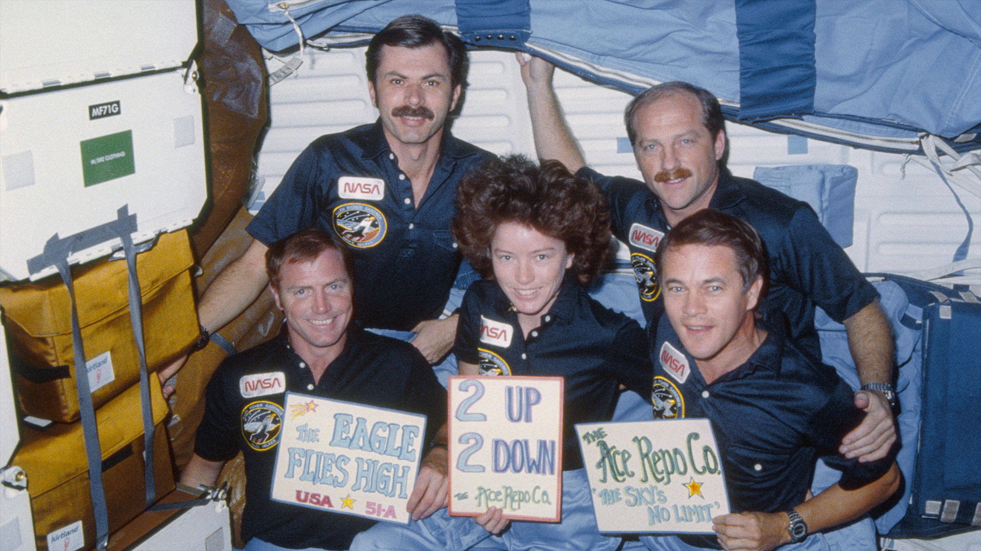 "Sally [Ride] was great," said Hauck in his 2003 oral history. "She's a number one professional; very industrious; always thinking about the objectives for the flight; and [had] a good sense of humor; very productive. It was a pleasure."
