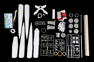 Estes' Pro Series II Soyuz flying model rocket kit includes more than 100 parts, including blow- and injected-molded components that need "a bit" more glue than is typical for Estes' kits. (Estes)