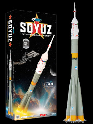 Russia's Soyuz, which as a member of the Soviet-era R7 family of rockets has been launched more than 2,000 times, has now been made into a highly-detailed collector's model capable of flight. Released by Estes, the world leader in model rocketry, the Pro Series II Soyuz kit assembles into a 1:48-scale display and, when loaded with a solid-fuel engine, can soar 500 feet (152 meters) off the ground.