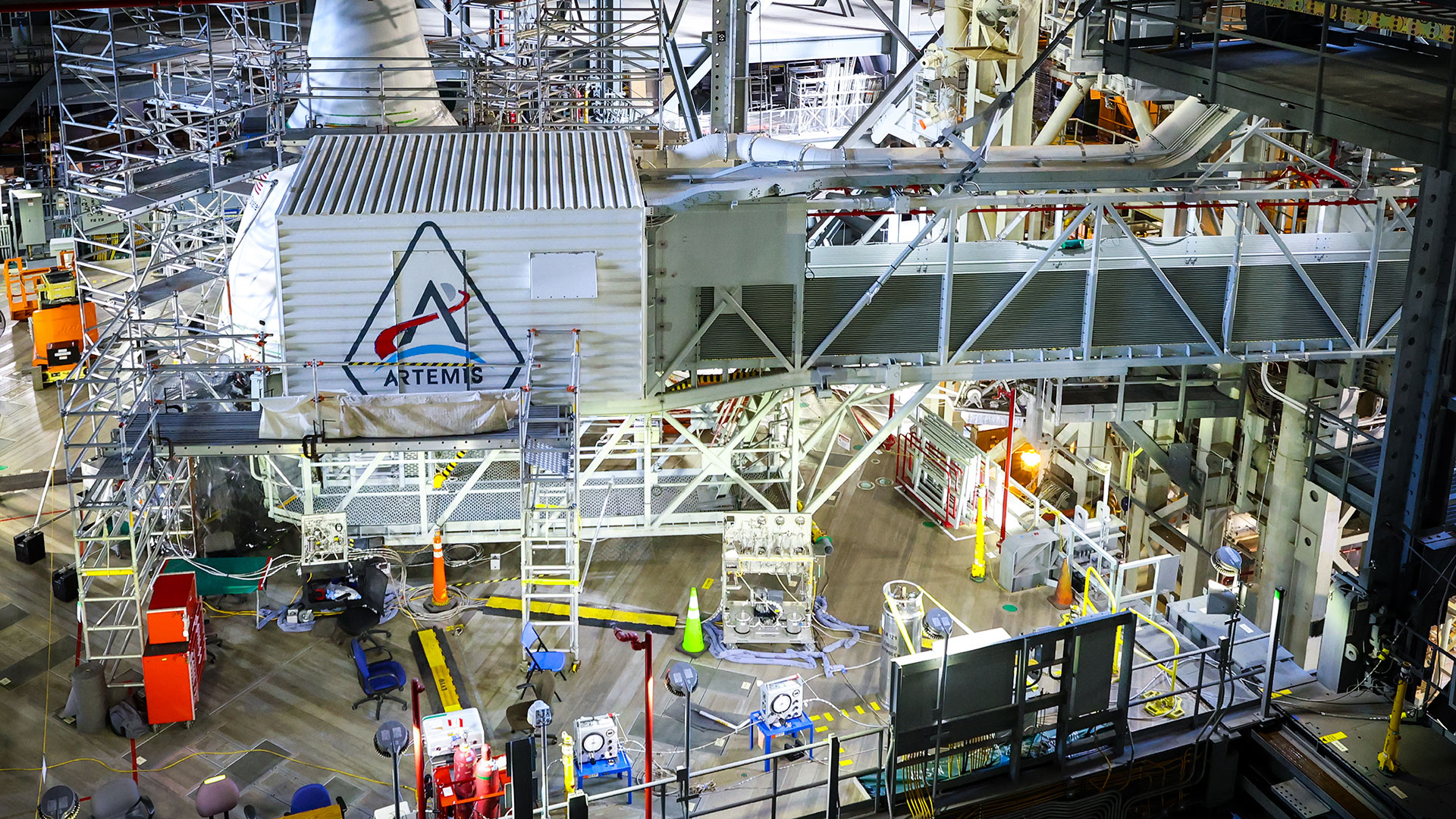 Artemis adornment: NASA paints program logo on gantry white room