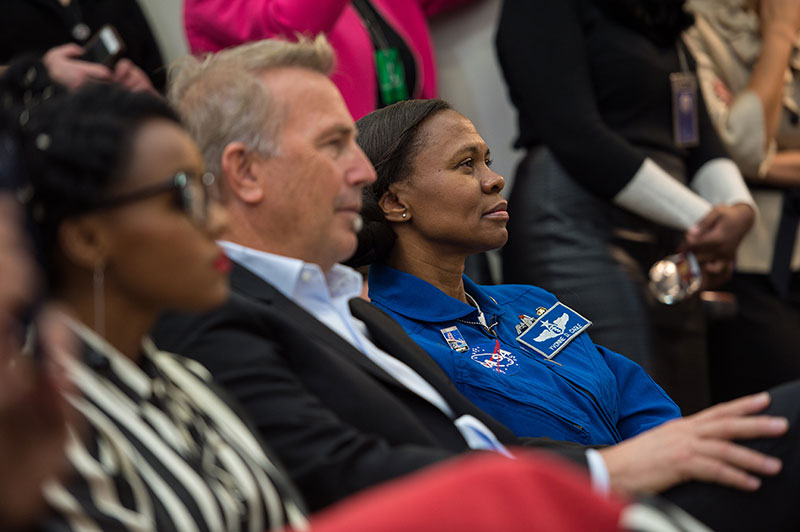 Yvonne Cagle with Janelle Monáe and Kevin Costner, December 15, 2016, Washington, DC (CREDIT: NASA/Aubrey Gemignani);