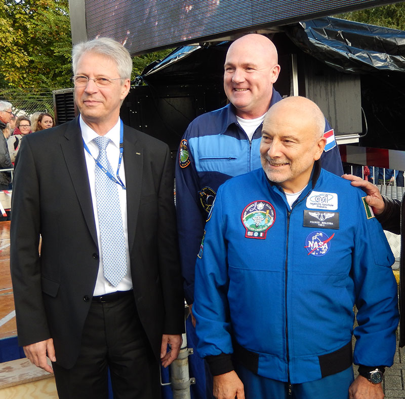 Claude Nicollier and André Kuipers, September 16, 2007, Cologne, Germany (Credit: Christoph Kaspari);