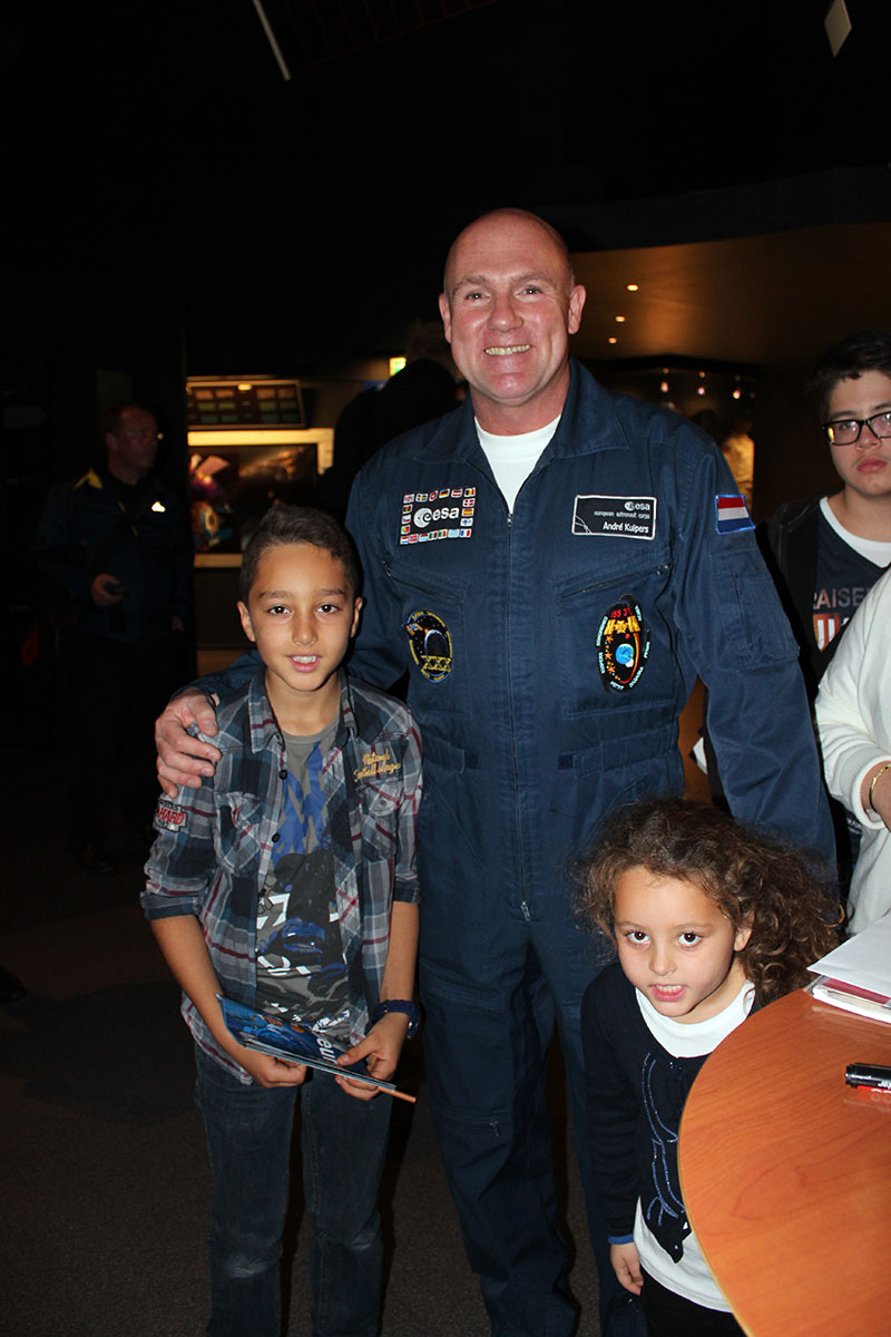 André Kuipers with Justin and Dunya Plas, November 3, 2013, Noordwijk, The Netherlands (Credit: Mark Plas);